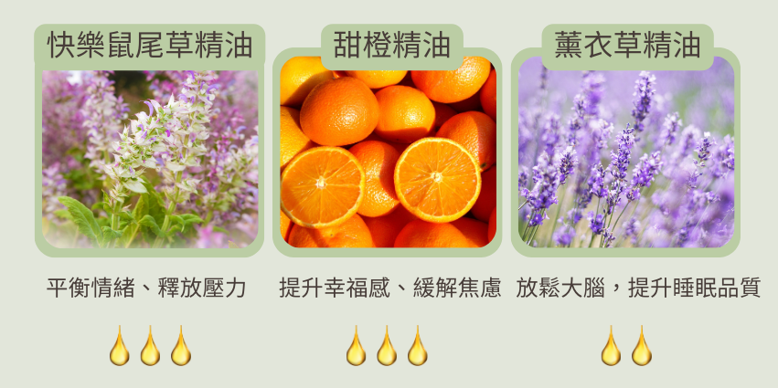 甜橙精油 3 滴(提升幸福感、緩解焦慮)