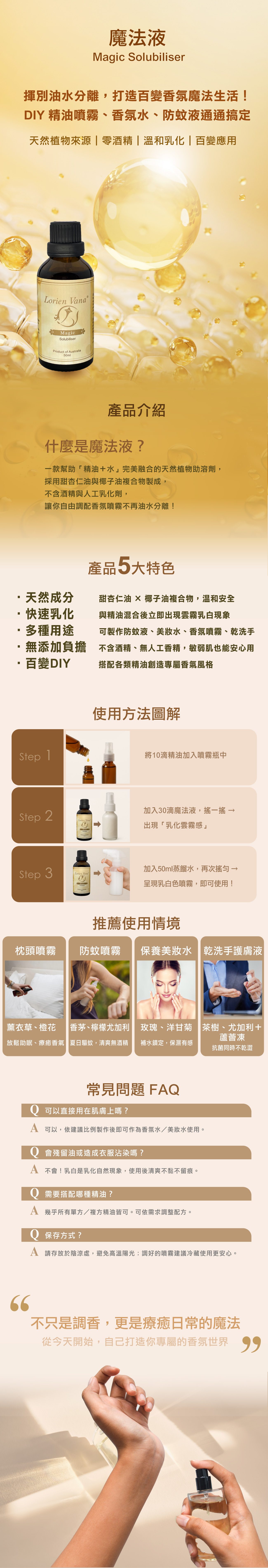 • 多種用途 可製作防蚊液、美妝水、香氛噴霧、乾洗手