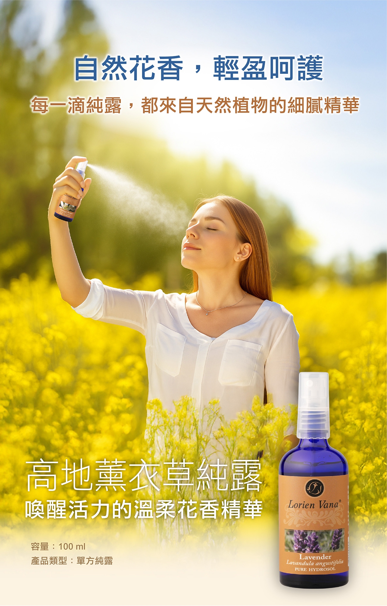 採用新鮮植物蒸餾而成,保留植物的天然香氣與活性成分,溫和不刺激,適合日常肌膚呵護。