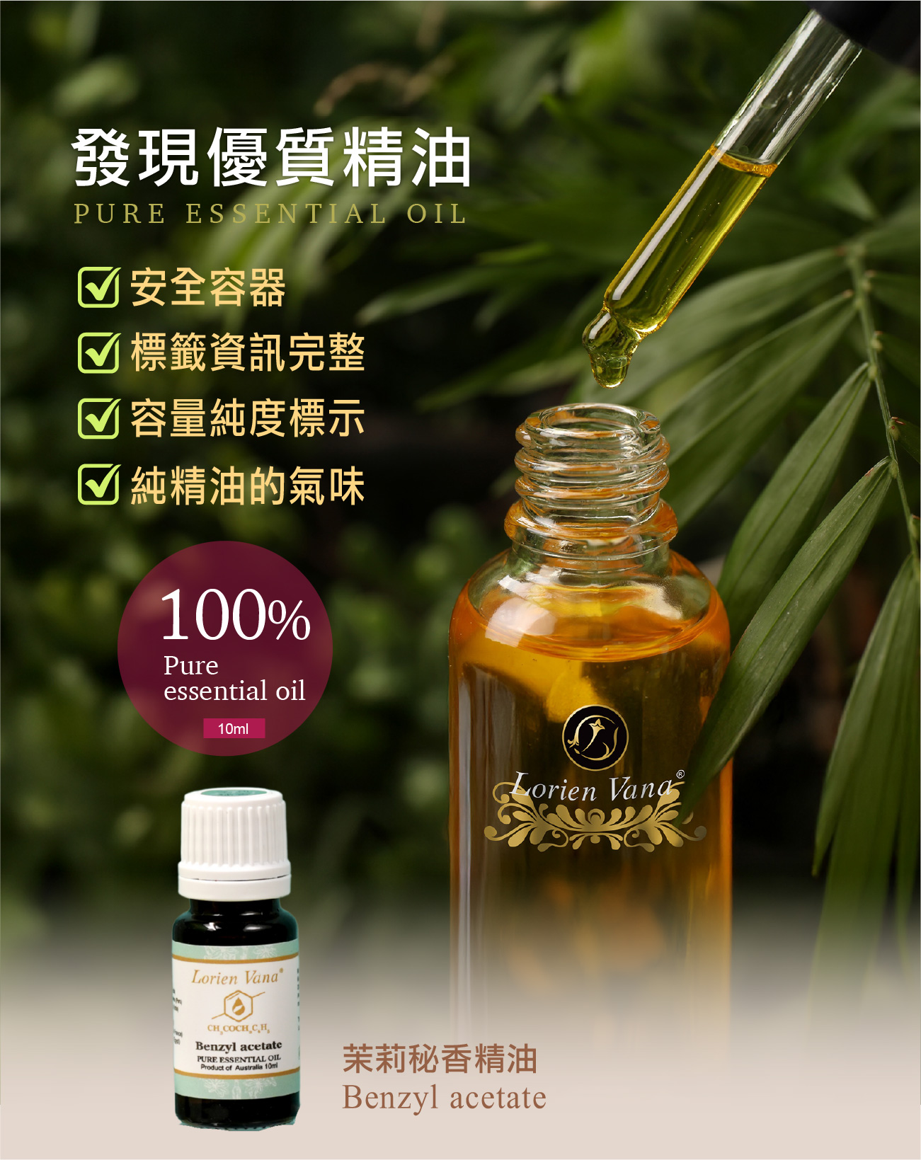 :阿拉伯茉莉、秘魯香脂、銀合歡、佛手柑、檸檬薄荷、真正薰衣草、苦橙葉、快樂鼠尾草。